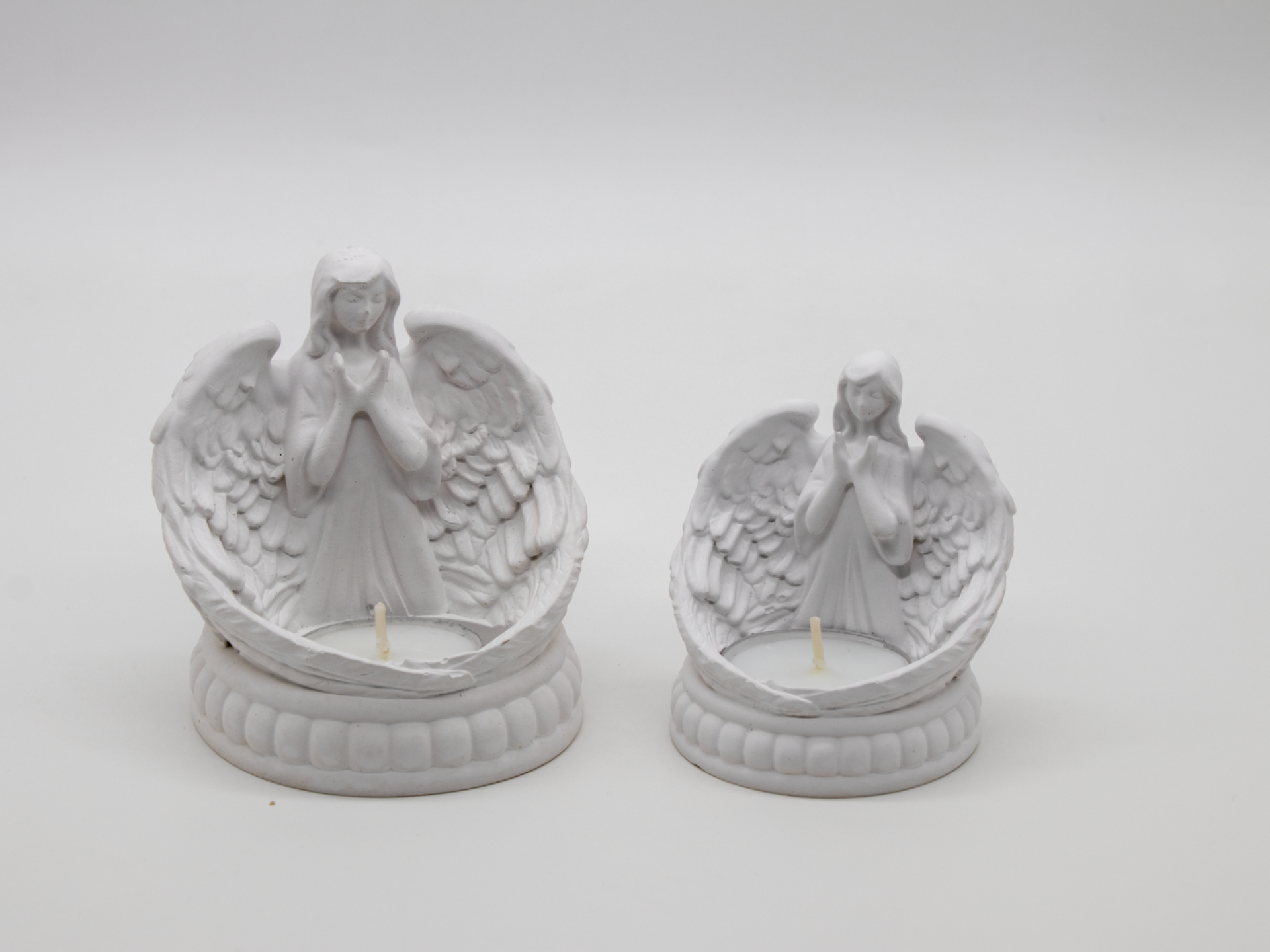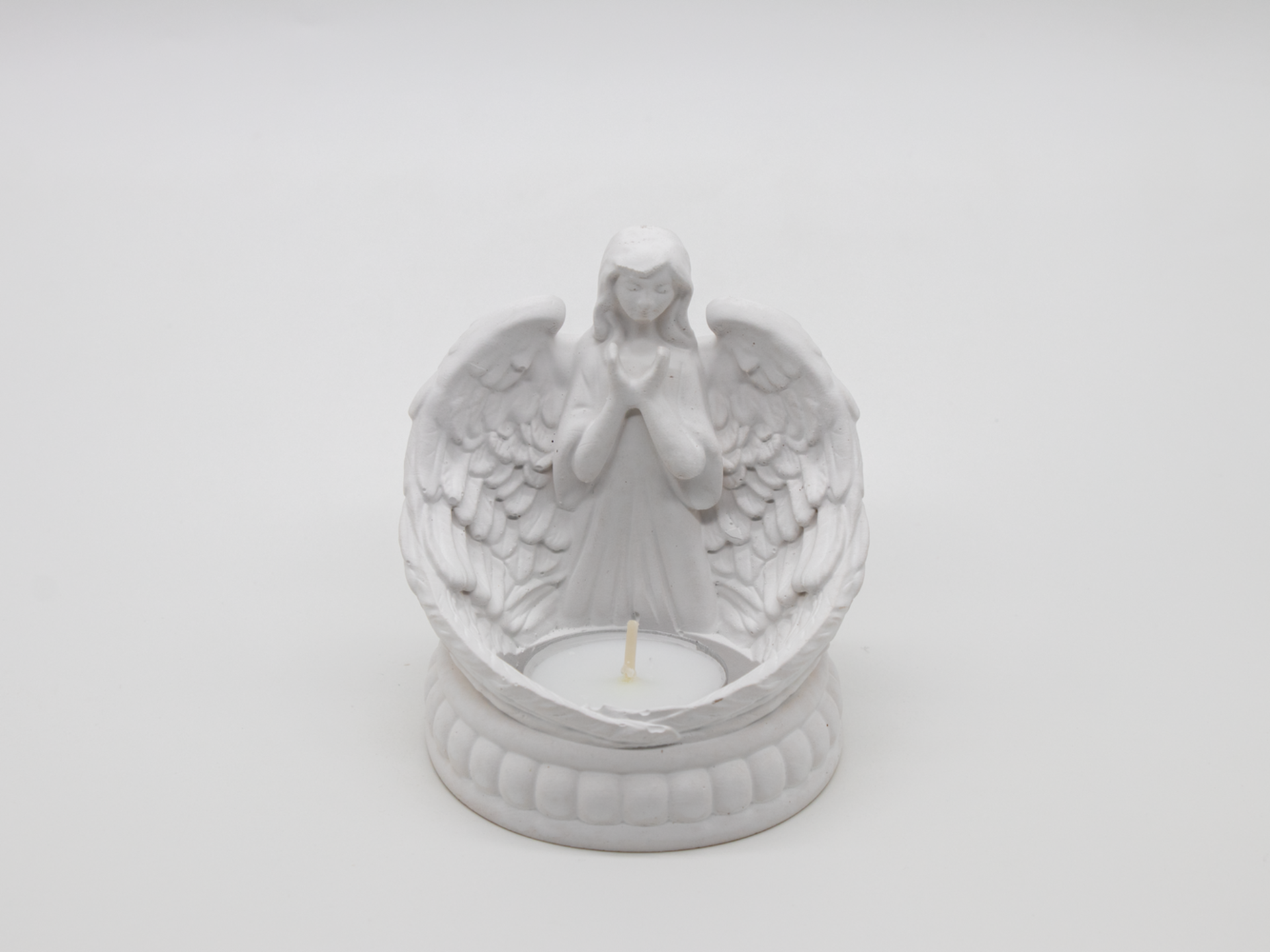 Tento andělíček na svíčku je jemně propracovaný s láskou k detailu, aby jeho křídla a ruce působily harmonicky a ochranně.