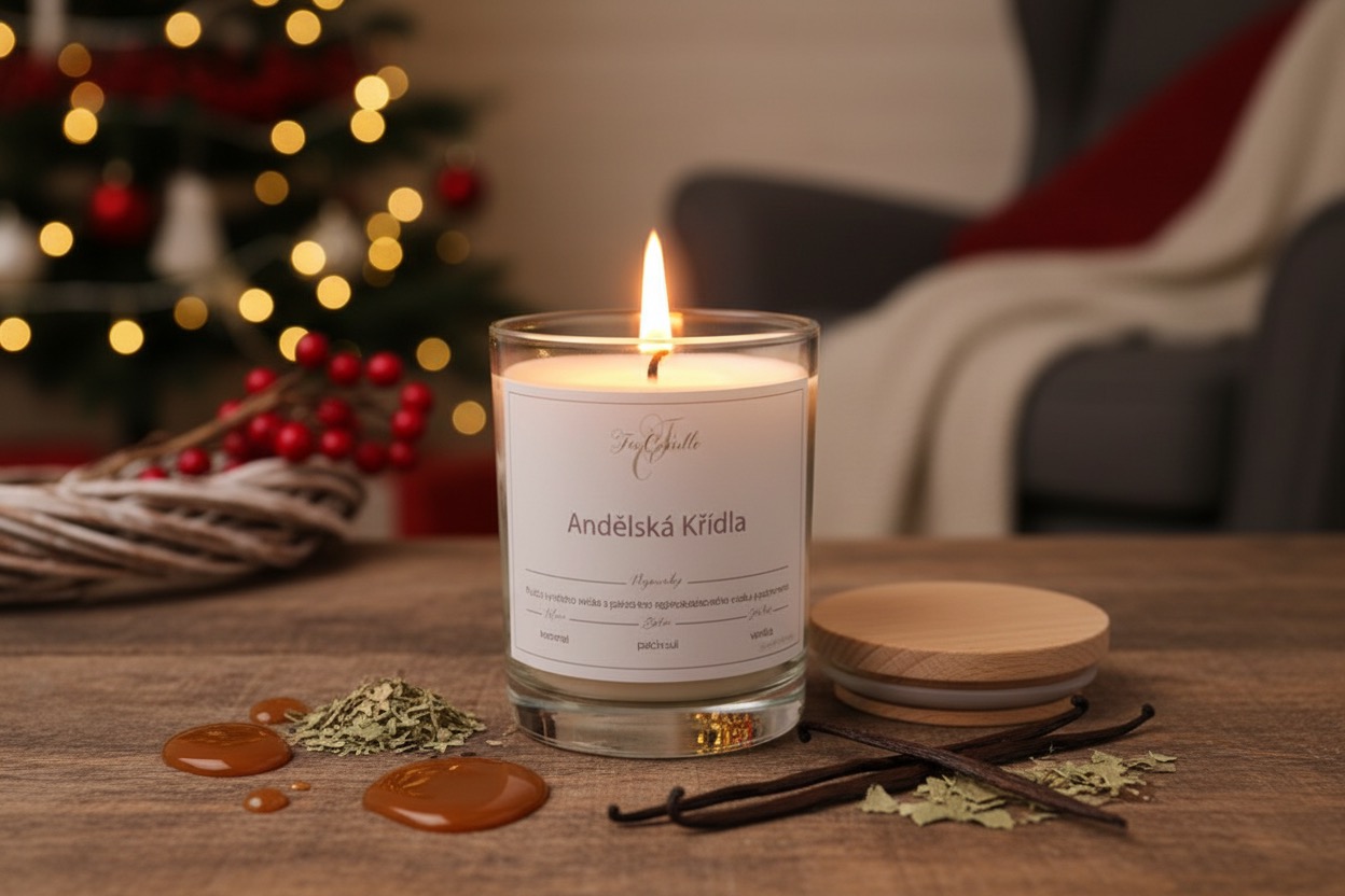 Ručně vyráběná se špičkovými ingrediencemi, každá svíčka "Andělská křídla" přináší jedinečný zážitek. Kombinace karamelu, patchouli a vanilky vytváří harmonickou symfonii, která vaši mysl uklidní a povznese.