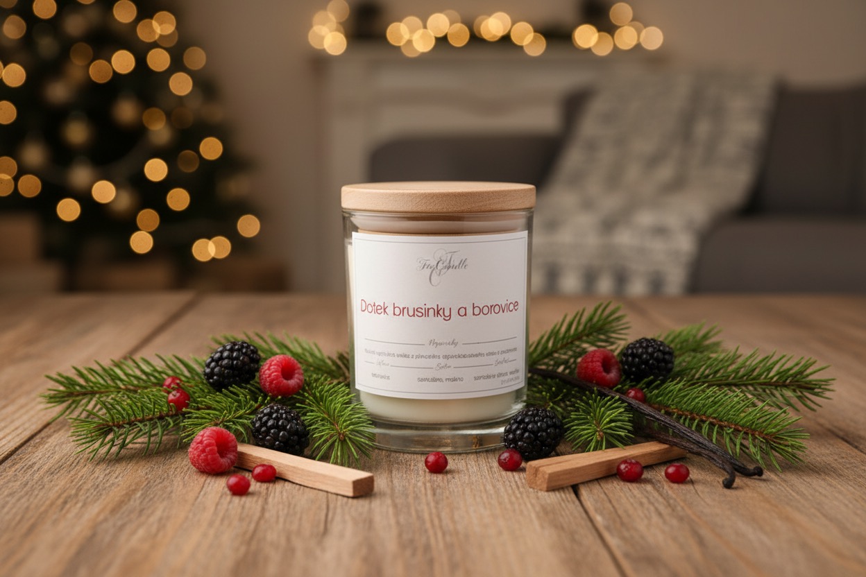 Zapalte si naši svíčku "Brusinka s borovicí" a nechte se unášet do světa přírodních vůní a dřevité elegance, která váš domov promění v oázu klidu.