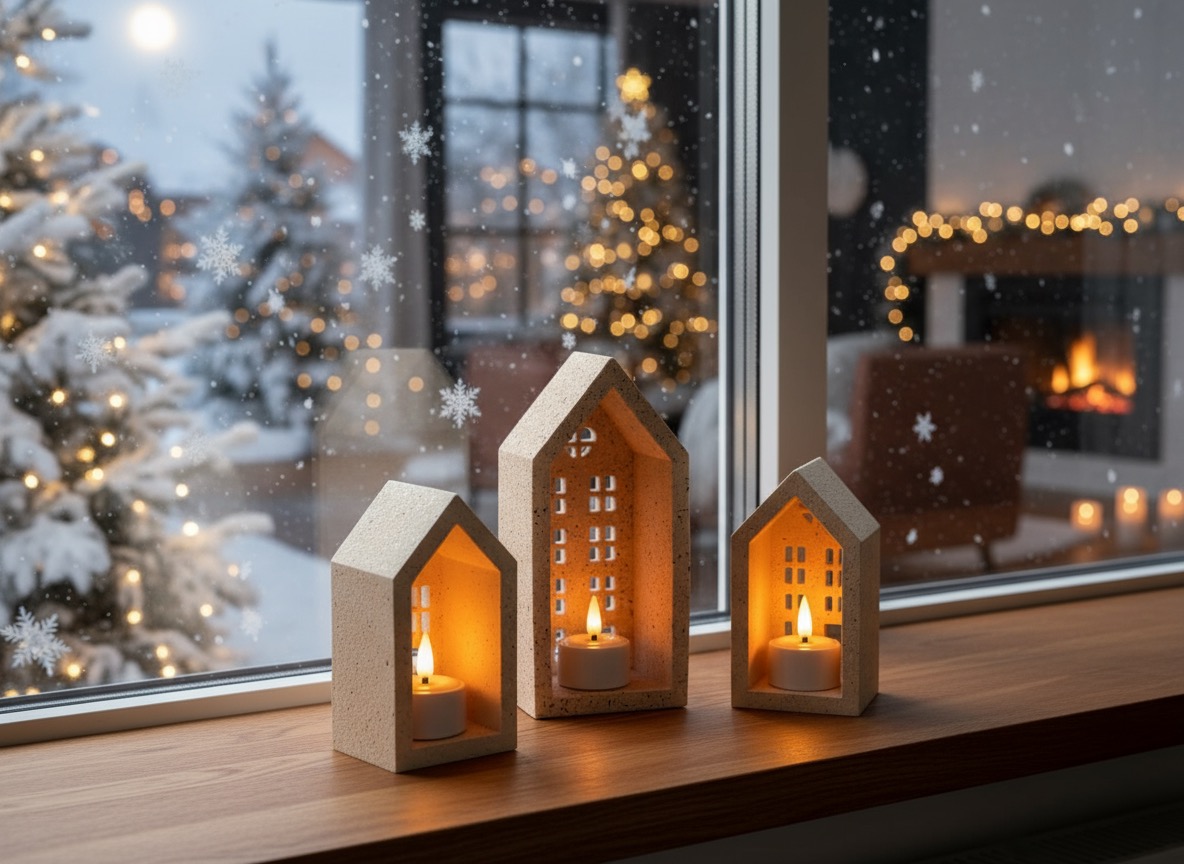 Vneste do svého domova útulné světlo a elegantní styl s těmito ručně vyráběnými domečky z dentální sádry. Povrch s 3D strukturou věrně imituje vzhled přírodního kamene – na výběr máte z efektní žuly, jemného mramoru nebo teplého pískovce.