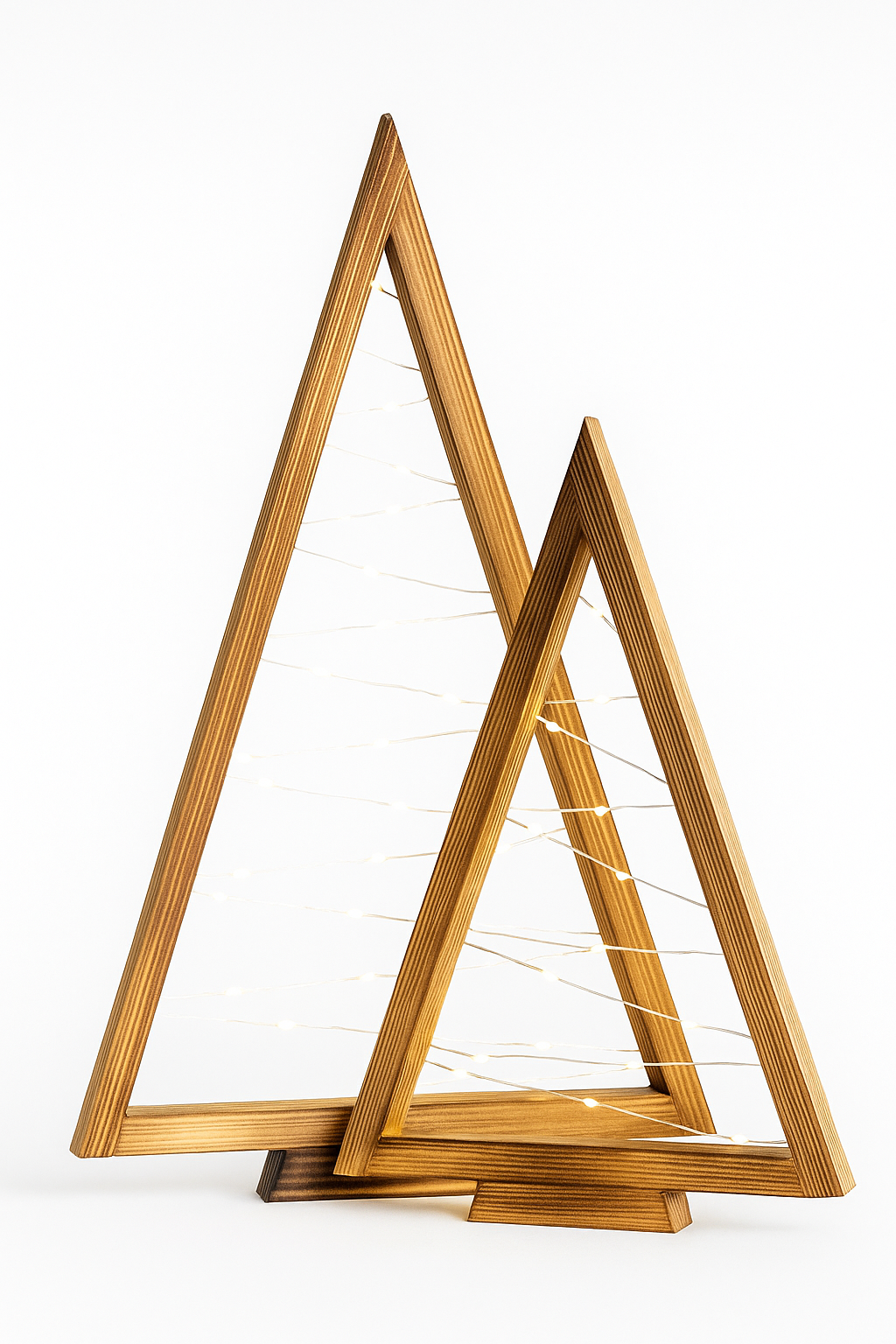 Dřevěný stromeček se světýlky je ideální pro interiér, jako středobod vánoční dekorace, na poličku, okno nebo stůl, a přináší teplé, jemné světlo a sváteční atmosféru do každého domova.