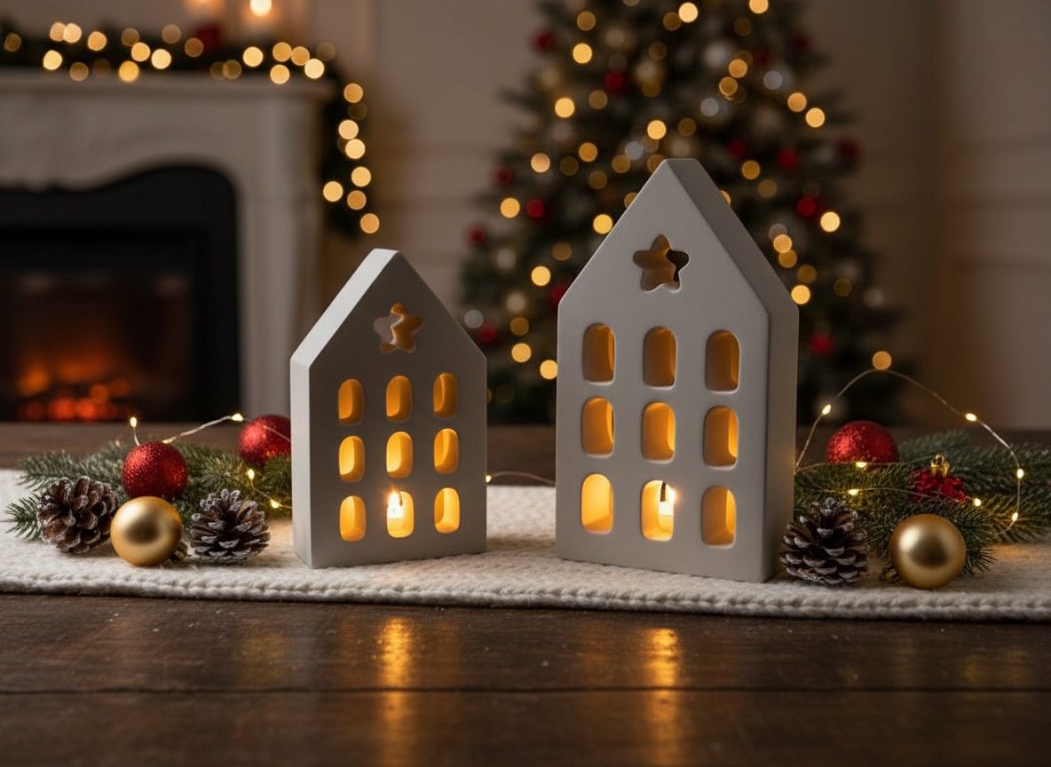 Každý domeček má unikátní design s hvězdičkou na střeše, která přidává do vaší domácnosti hvězdný nádech. Spousta okének po celém těle domečků přináší do vašeho interiéru mnoho světla a vytváří iluzi útulné vesničky.