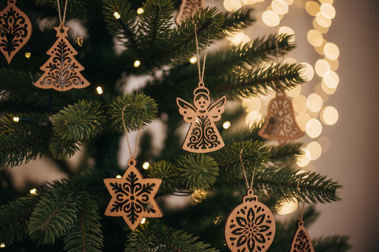 Ozdoby jsou vyrobené z kvalitní bukové překližky a ošetřené lněným olejem, který zvýrazňuje přirozenou kresbu dřeva a dodává jim hřejivý odstín. Každý kousek je ručně dokončený a jemně gravírovaný pro dokonalý detail.