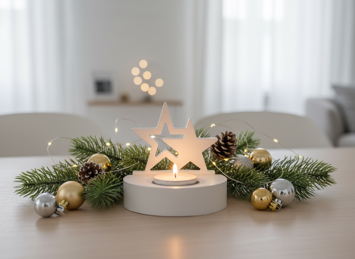 Socha dvouhvězdičkového motivu v obrysu je ideální pro umístění na podstavec, který je součástí balení. Tento podstavec dodává soše stabilitu a umožňuje snadné umístění na vašem stole, poličce nebo komoře jako výrazný středobod vašeho interiéru.