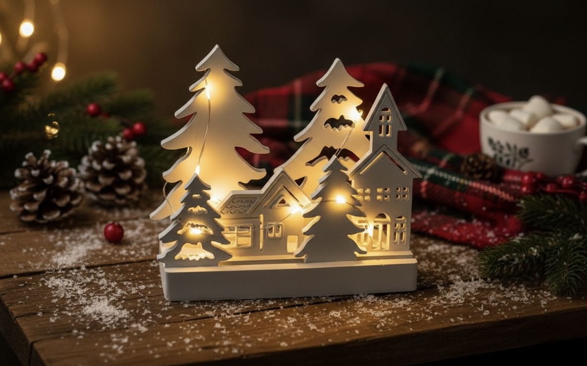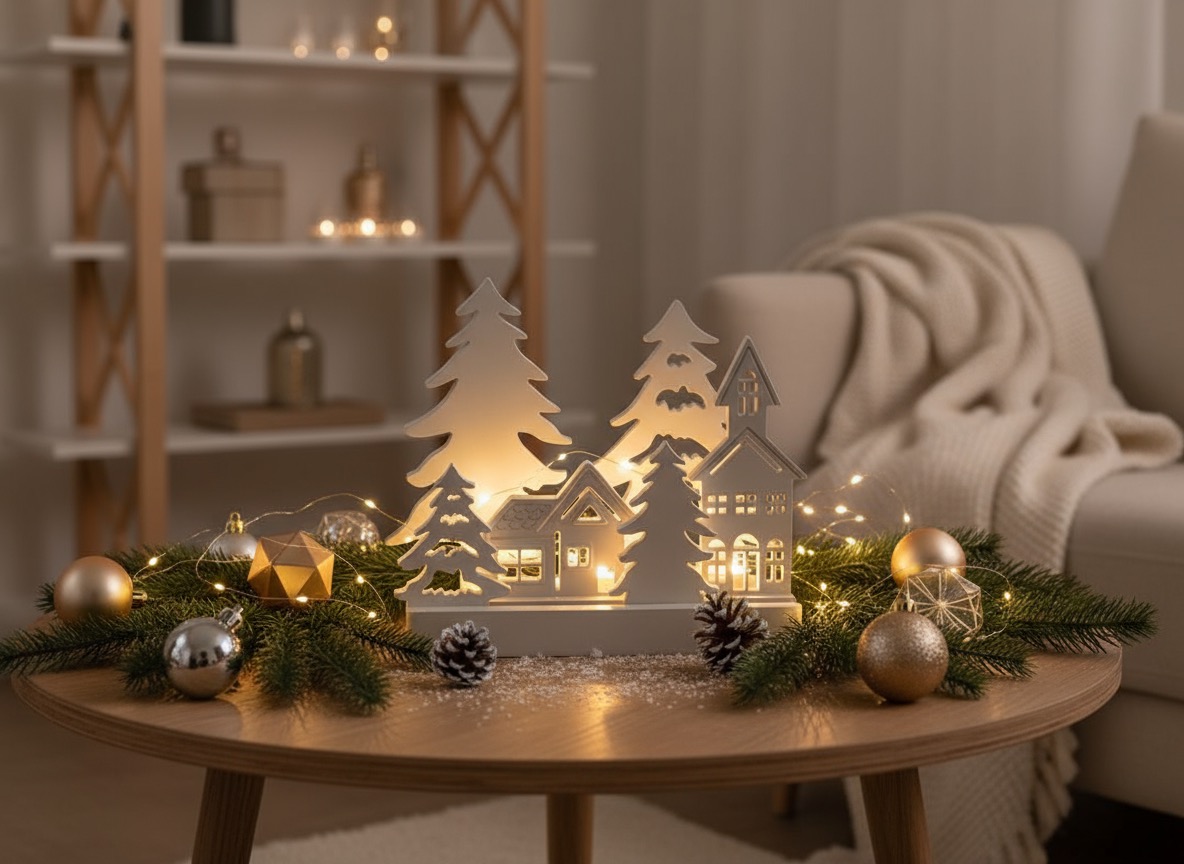 Víceúčelovost: Tato sada není jen svícen, ale i dekorativní prvek. Umístěte ji na váš vánoční stůl, do obývacího pokoje nebo na komodu a užívejte si pohádkovou atmosféru.